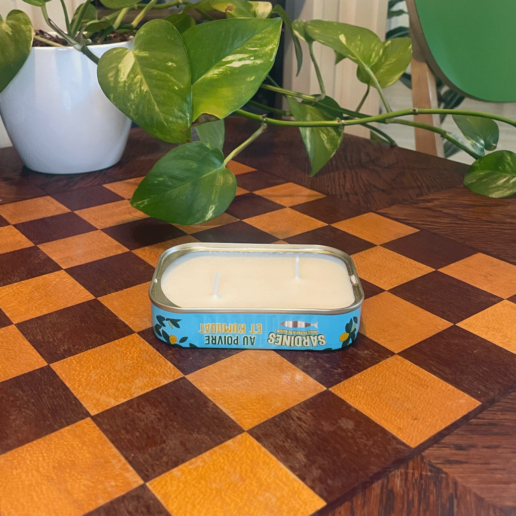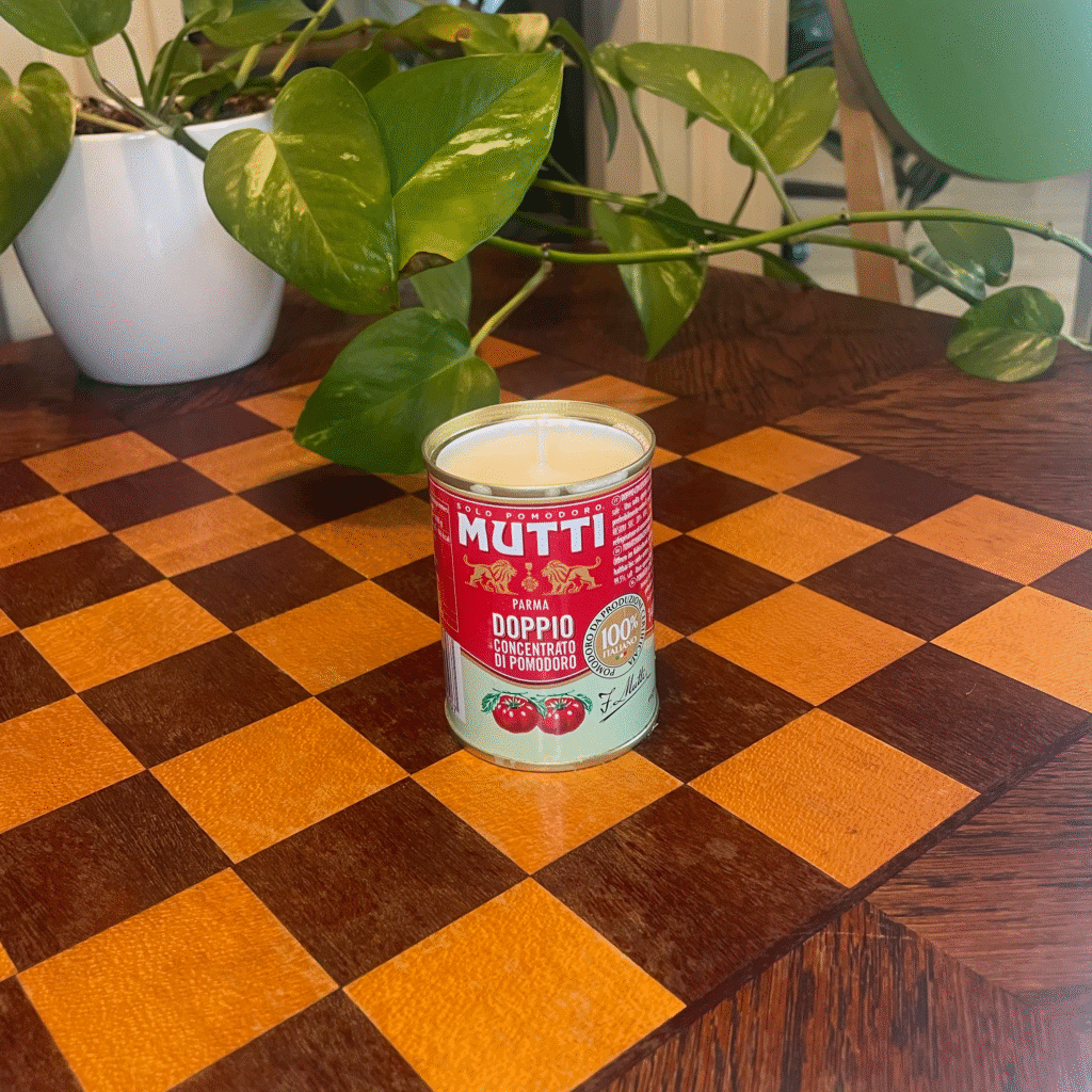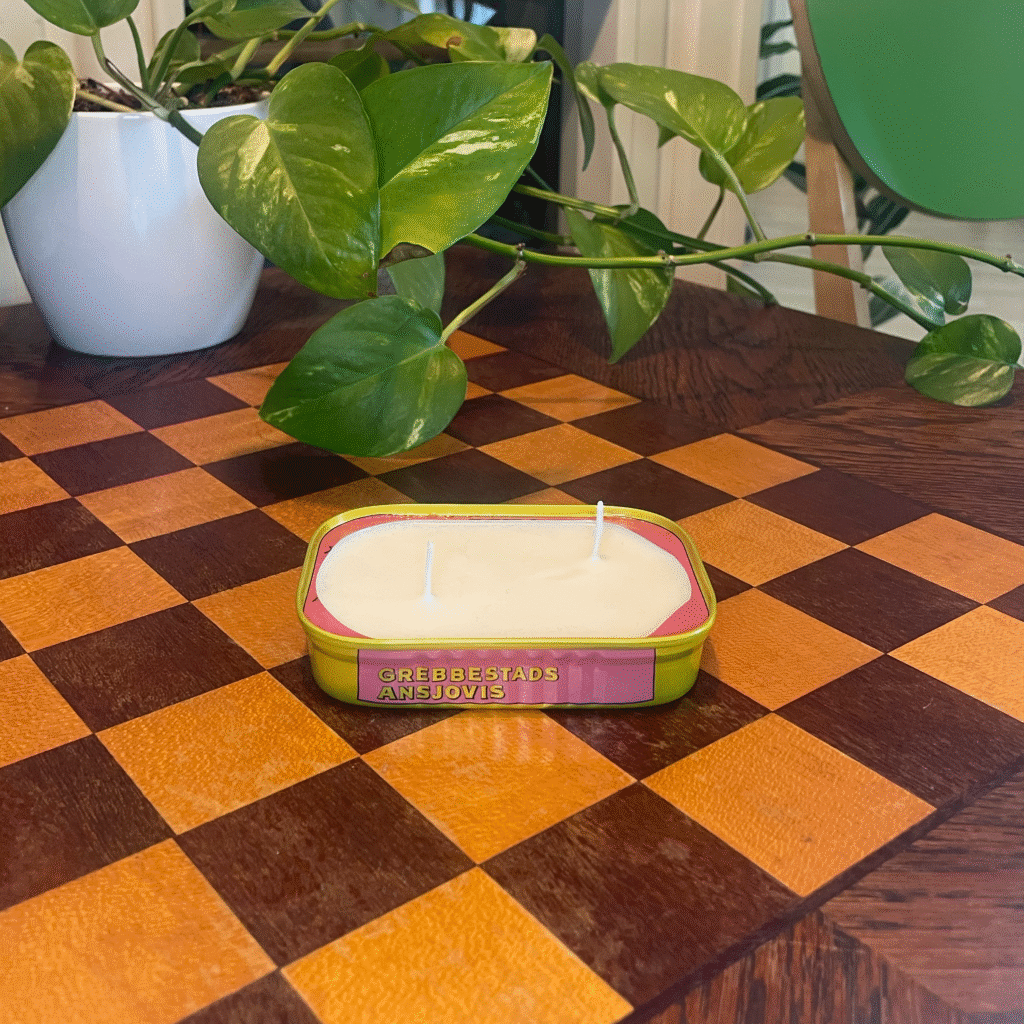 Welcome to this corner, where my friend Mia and me create beautiful candles from recycled tins. We get our tins from friends and family and from our own groceries. We keep an extra eye out when doing groceries for beautiful tins, with the idea that we can use them here.